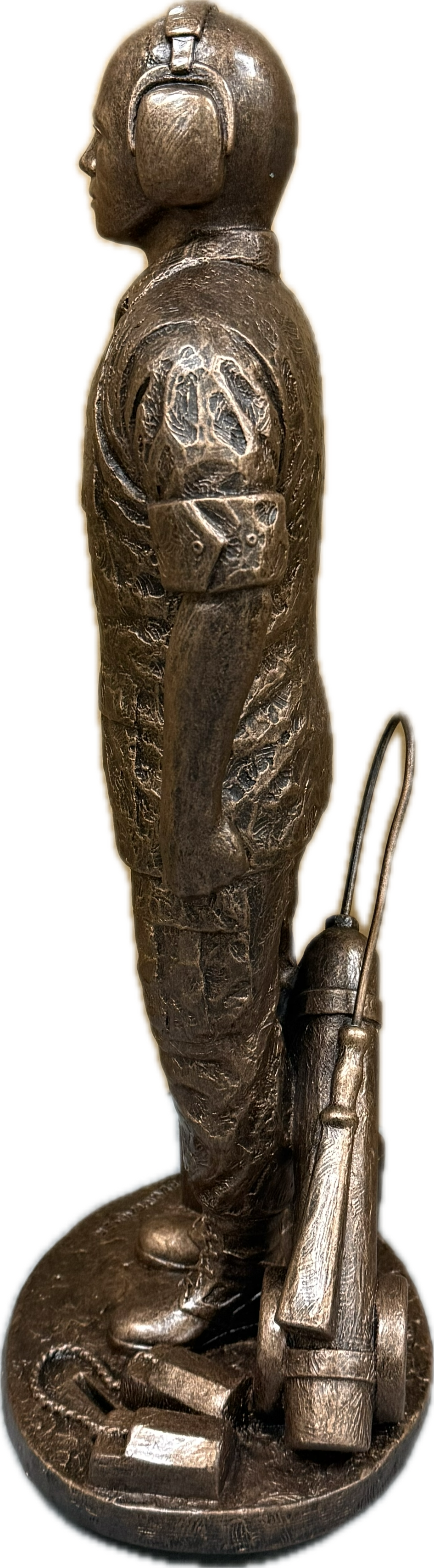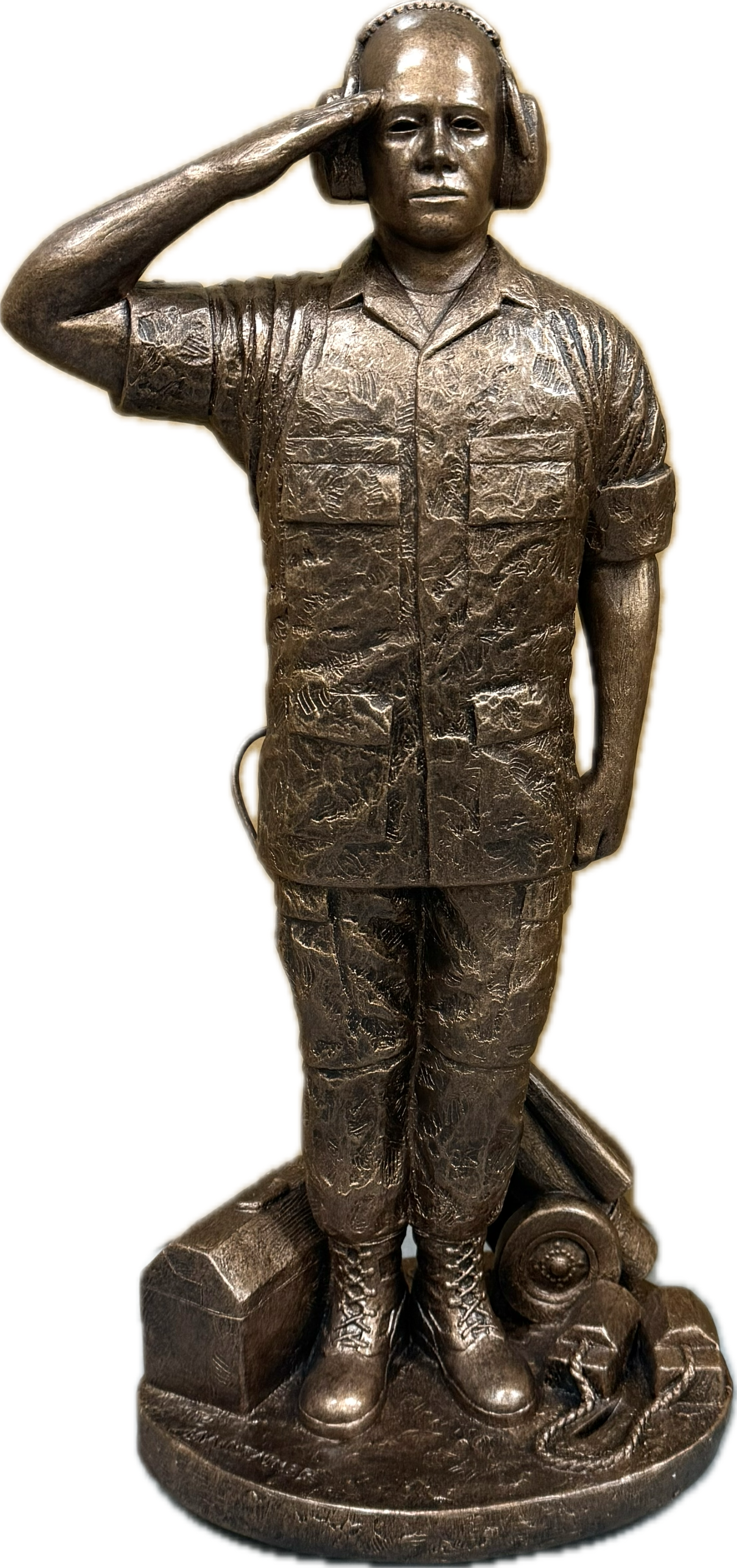 This finely crafted bronze-finish statue depicts a proud military serviceman in full salute, rendered in stunning detail. Standing at attention in combat fatigues, the figure captures the dignity and dedication of those who serve.